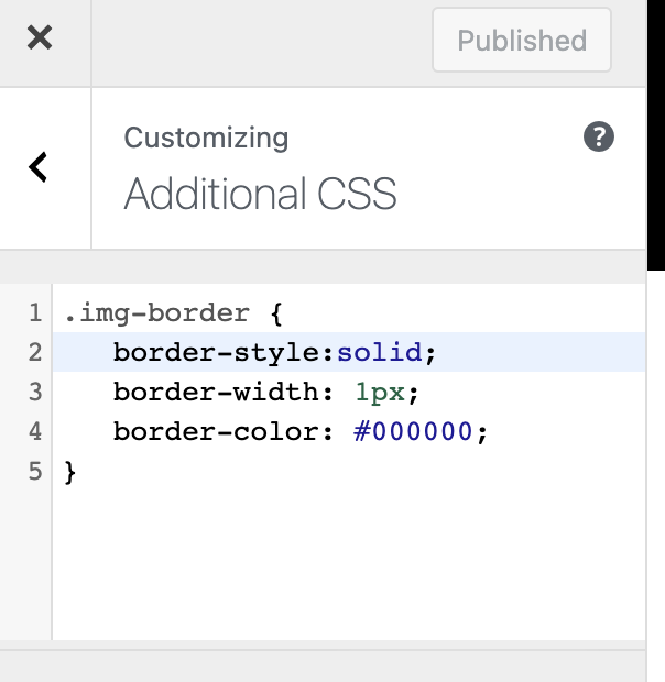 Here's how we define the custom class "border1" in the "Additional CSS" section of the site: