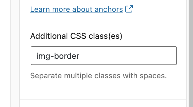 Now go to the post, select the image and under Block>Advanced you'll see this: