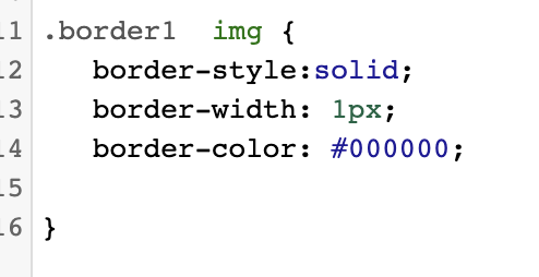 The first part of the selector: We are looking for an occurance of the class "border1". (The dot in front of a word signifies that it is a class). When we find it, we always find it in an element (eg, <div> or <figure>).