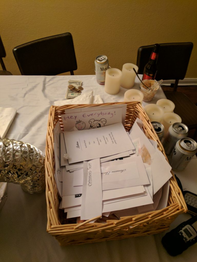 So we invited our most forgiving and supportive friends. All flubs were overlooked and the only real criticism was that a few guests said they kept trying to “figure it out”. There was nothing to figure out. Stuff happened. The end.