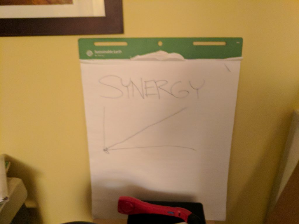 The small talk (my contribution to the skits) was so cringy to listen to people do and we thought it was a complete flop. However when the feedback came in the next day it turned out to be one of people’s favorite things. The participatory nature of it was what made it a winner, I think. People liked the challenge of listening for when it was their turn. We did have issues with one person shuffling the cards right away, which totally messed it all up and took a few minutes to undo. There were other issues and over the seasons we finally got it figured out. Eventually I landed on stapling the cards together. (To make this story simpler I omitted the fact that there were other non-card versions that flopped before we landed on the stapled card solution).
