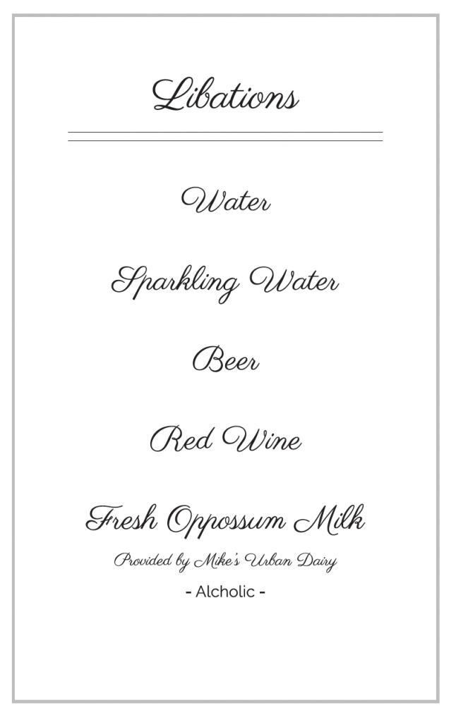 Once everyone has their drink, menus are handed out. Each person receives a different menu. Yours looks like this: