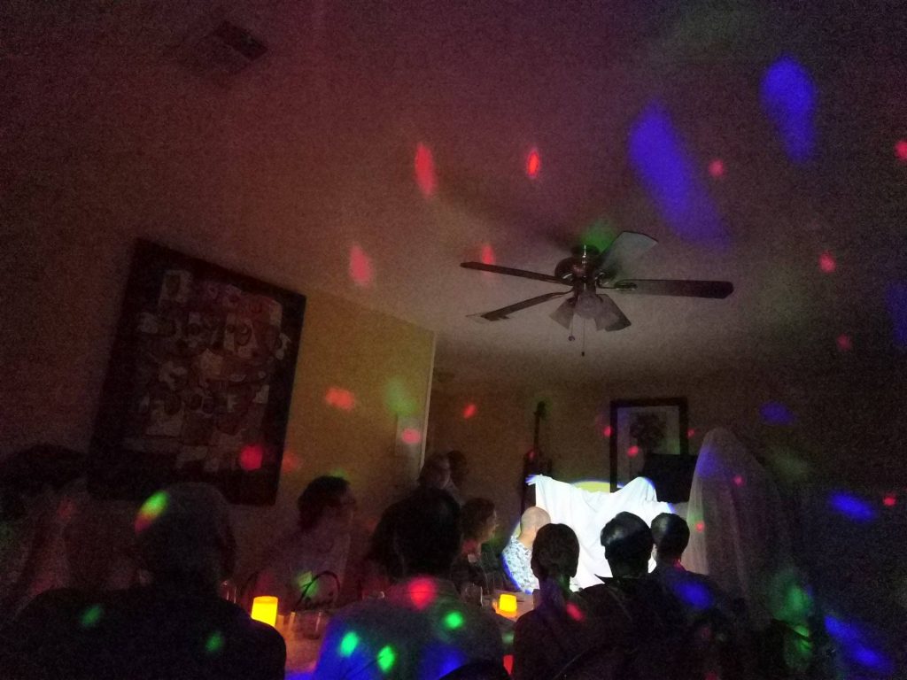 The ghosts were extremely tricky to put on and take off because they were just sheets with holes cut in them. We had to hide sheets to “turn” people into ghosts in the dark and finding our way around them was near impossible. Hopefully charming.