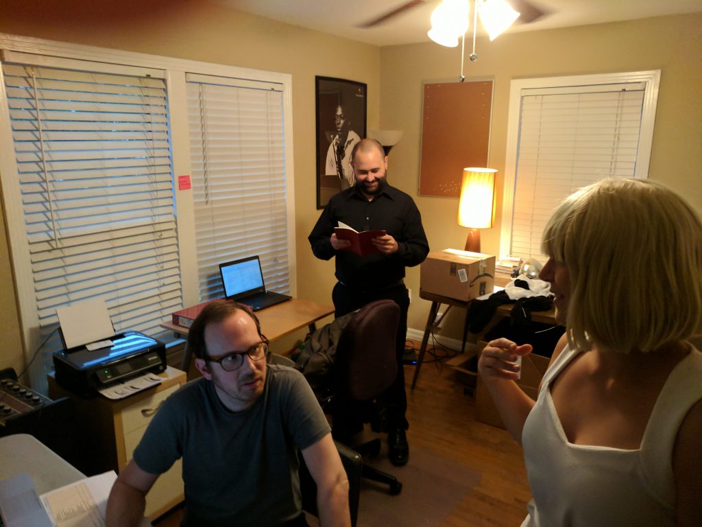 Blocking was super tricky and required a lot of changes and practice so that everything and everyone was where it needed to be at the right time. Putting on ghost outfits quickly in the dark was a constant challenge. Finding the eye holes before the lights came back on was near impossible and often we just left them wherever they lay and walked around blindly.