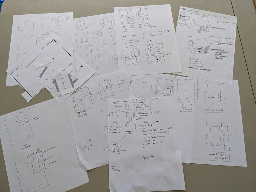 The plan is to move the Eureka Room mostly as-is to the new space. Even with just some minor modifications, it is taking a lot of brainwork to figure things out. A new ultra-short-throw projector, some thicker and more secure plexiglass walls, and putting the waiting room and tunnel into a room with a much higher ceiling has required a lot of thought.