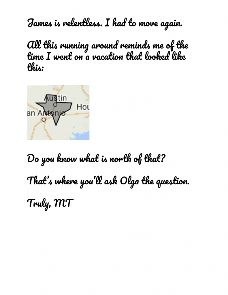 It’s also the name of a courier service located not too far from the market where they had lunch. They will decide to google “big cat messenger”, find the location, then drive over and find a couple notes I had left (I had called the company trying to get them to hold the notes for me, but they were too confused by my plan and not open on the weekend anyways).