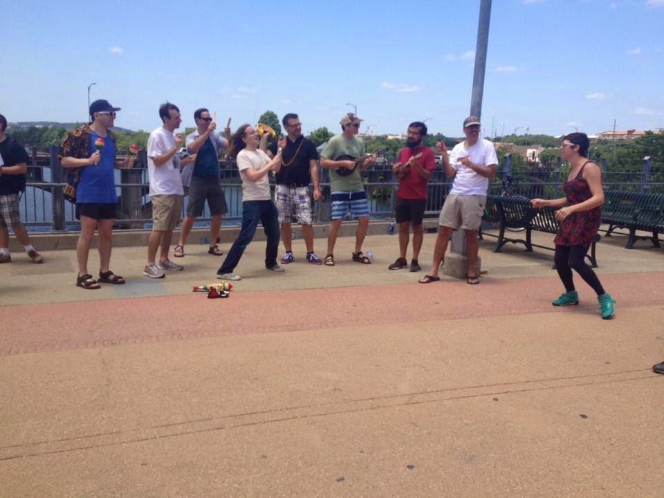 We weren’t getting any tips for some reason, so it was decided that some of us should stop playing and instead pretend to be mesmerized onlookers while setting the example of putting large amounts of money in the tip hat. We still didn’t get any tips.