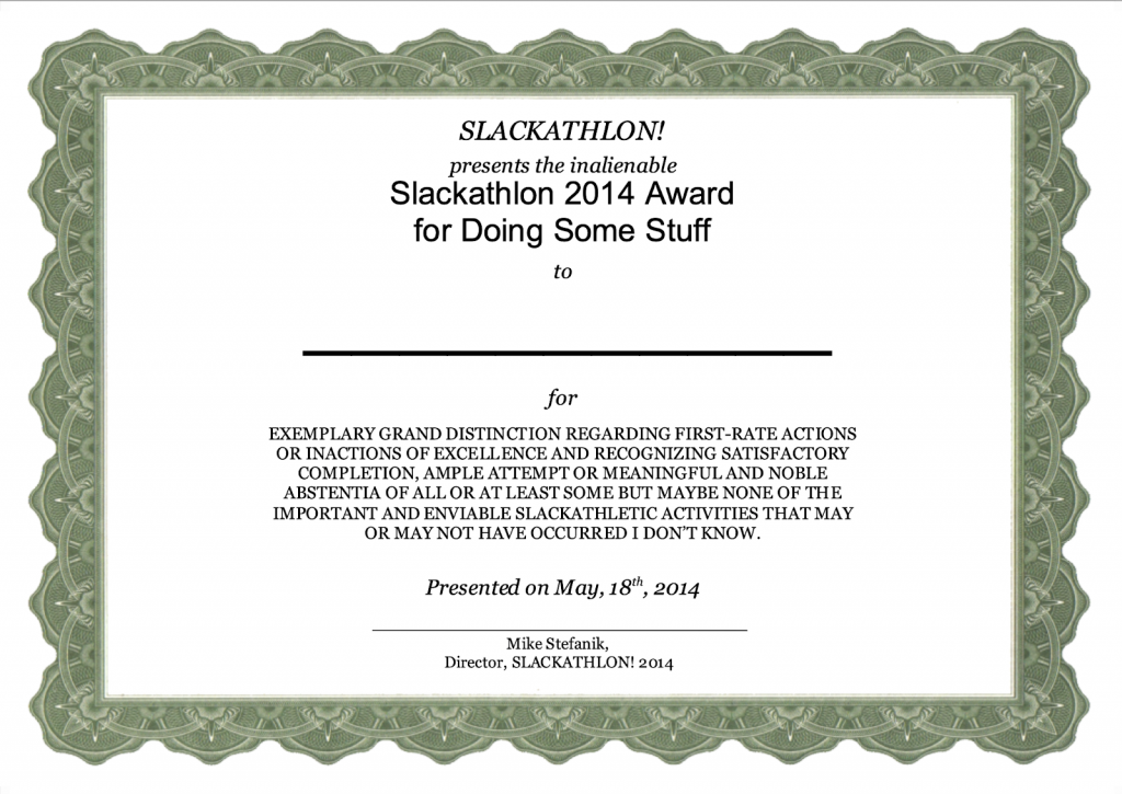 Since it was so much fun in 2013, I decided to hold Slackathlon again the next year.